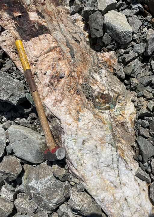 PHOTO 2: Newly discovered copper-stained quartz vein, ~70 cm wide, North West Claims