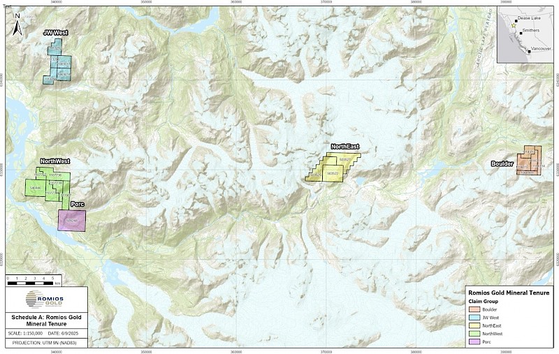 Toronto, Ontario – July 10, 2025 – Romios Gold Resources Inc. (“Romios Gold”) (TSX.V: RG) (OTC PINK: RMIOF) (Frankfurt: D4R) is pleased to announce that it has sold five claim blocks from its land package in the Golden Triangle region of northern British Columbia to Galore Creek Mining Corporation (“GCMC”).