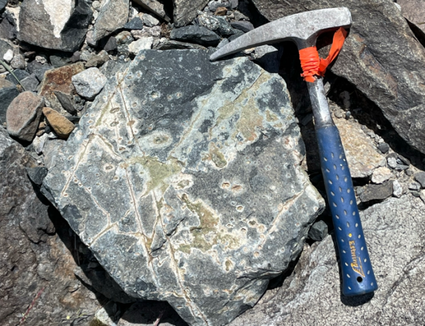 Photo 2: One of many large boulders in the area exhibiting strong porphyry/skarn type alteration