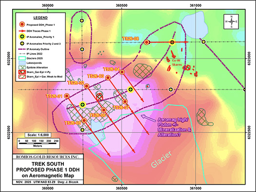 A restructuring process has been underway at Romios for the past half-year. This process culminated at an Annual General and Special Meeting (AGSM) of the Company held on January 16, 2026, results of which were announced on January 19th, 2026 (Click here). The purpose of this restructuring effort has been to improve the Company’s market appeal, such that it is better positioned to raise the new capital required to complete the initial phases of drilling at the Trek South prospect recommended by the Technical Report. A broad range of geosciences applied to the Trek South prospect in the period since 2021 including mapping, sampling, magnetic, IP and MT geophysical surveys, have delivered high-order, complementary results that all vector to the same conclusion: that the target area offers high discovery potential.